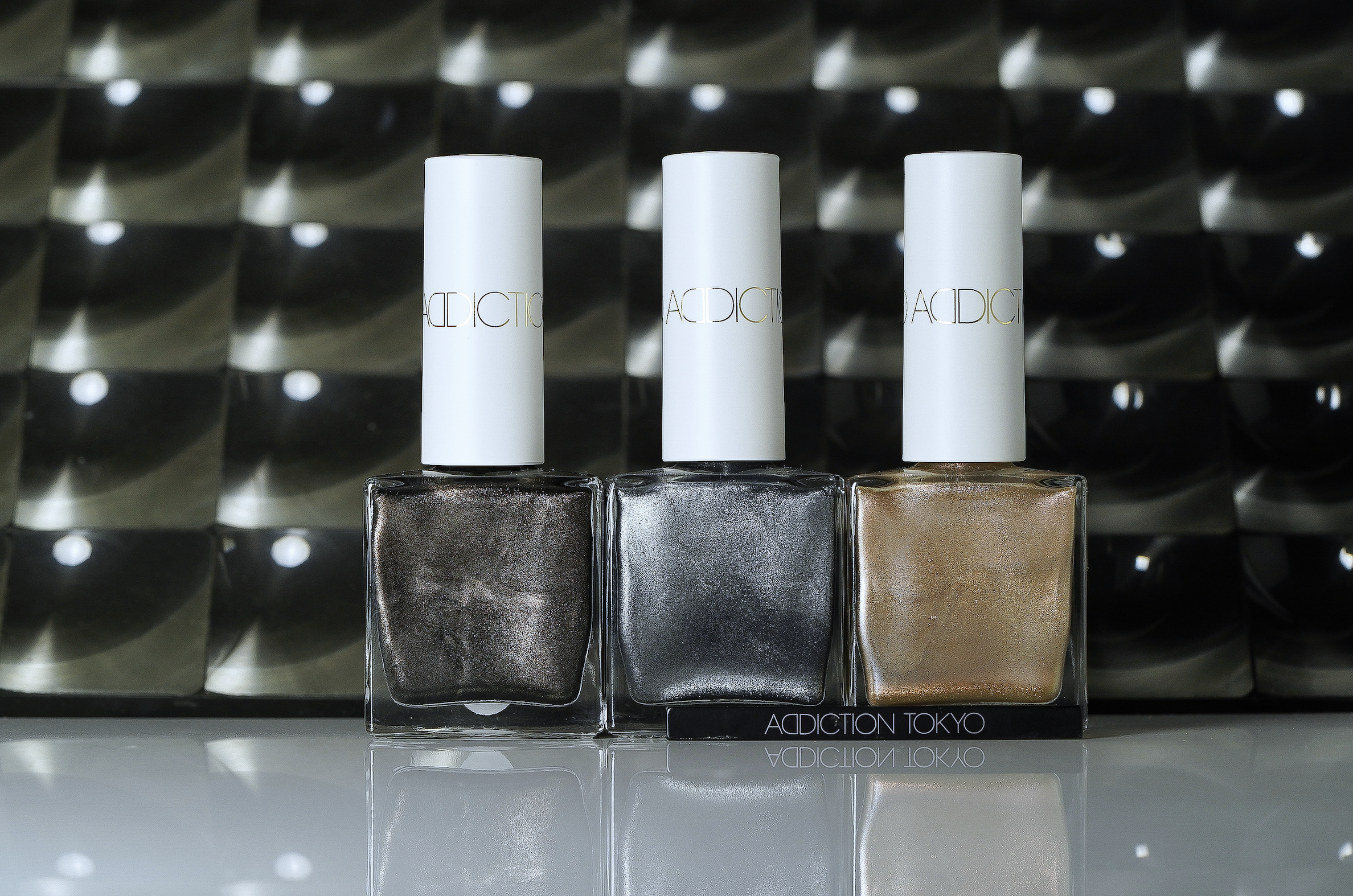 (左から)103MG、102MG、101MGの3色は、いずれも微細なパールを内包し、磁力によって光の表情が変化する特別な限定色。各[12ml]¥3,300(すべてADDICTION/アディクション ビューティ)
